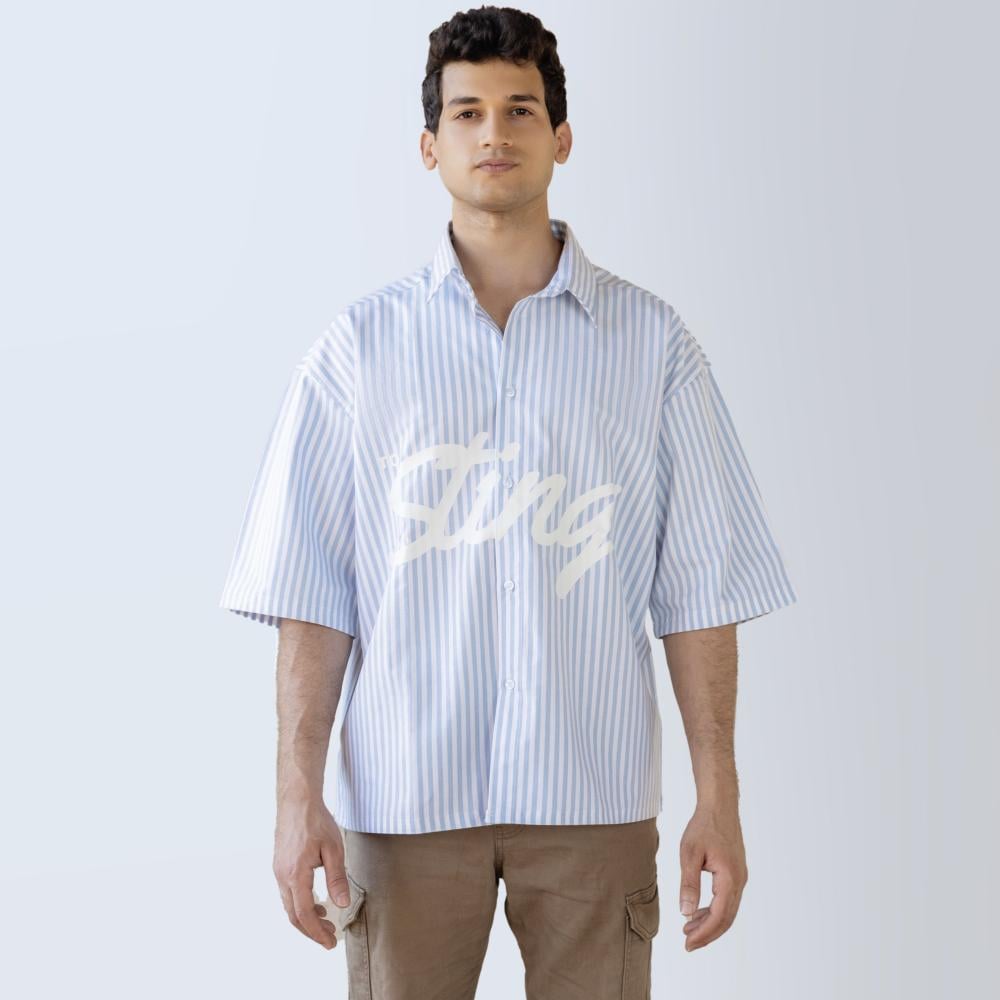 button up shirt summer baby blue Color soft material with a box fit